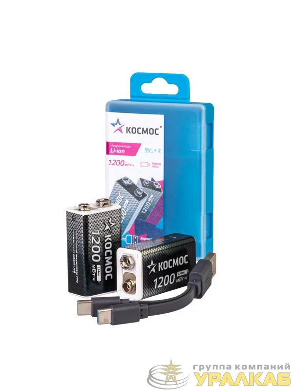 KOCLi9V1200mAh2B - Аккумулятор крона Li-ion 9В 1200мАч (уп.2шт) КОСМОС