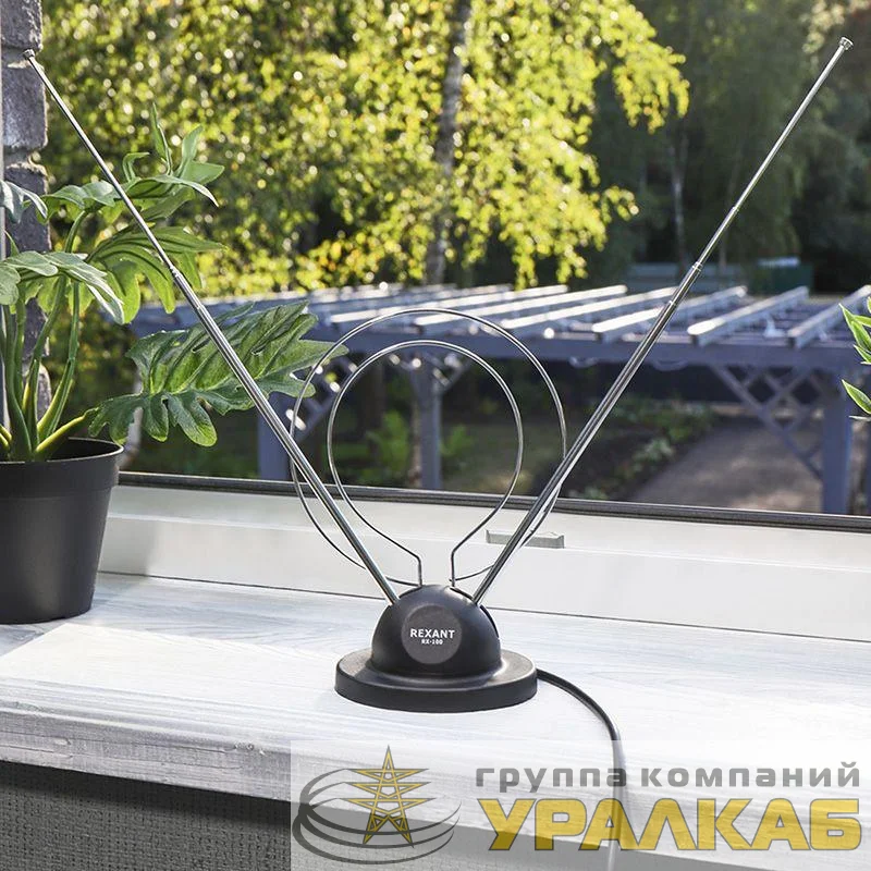 Антенна ТВ комнатная RX-100 телескопич. на подставке с кольцом VHF; UHF 47-860MHz REXANT 34-0100
