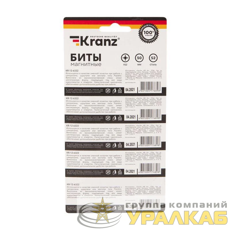 KR-12-6322 - Бита PZ2x50мм для шуруповерта сталь S2 (уп.5шт) (лента) Kranz