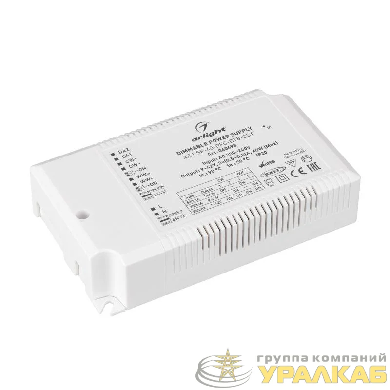 040498 - Блок питания ARJ-SP-40-PFC-DT8-ССT (40Вт 9-42В 0.5-0.8А) IP20 пластик Arlight