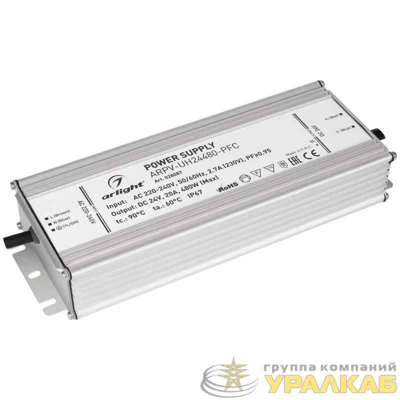 Блок питания ARPV-UH24480-PFC 24В 20А 480Вт IP67 метал. 7 лет Arlight 028087