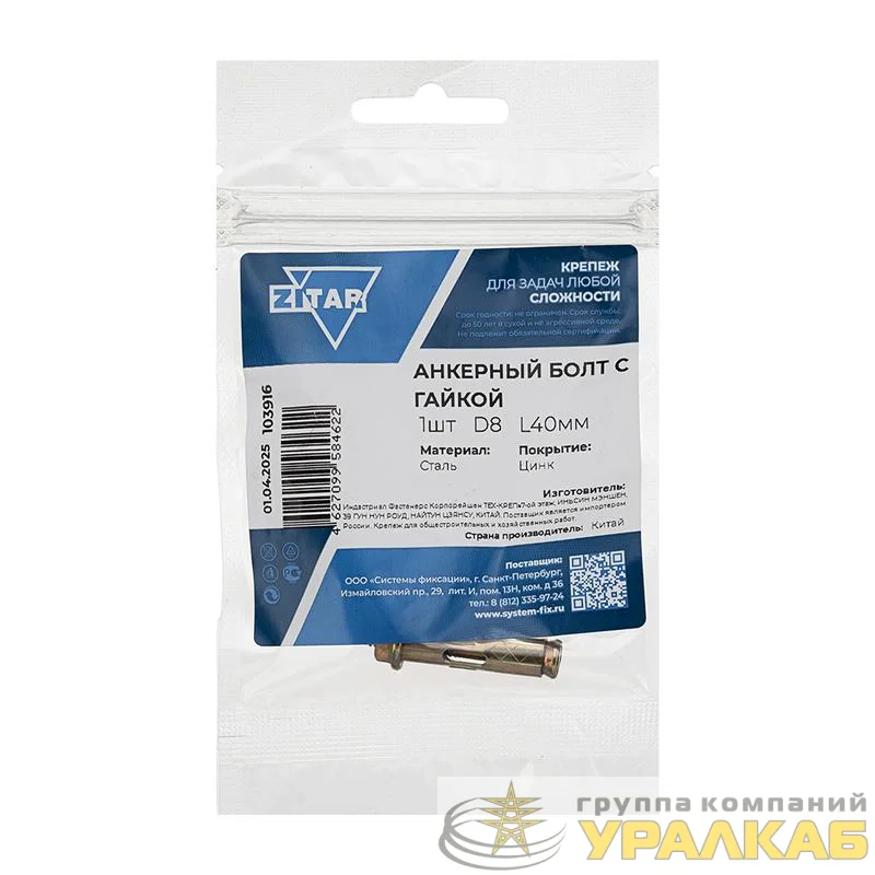 Болт анкерный с гайкой 8х40 Tech-Krep/Zitar 103916