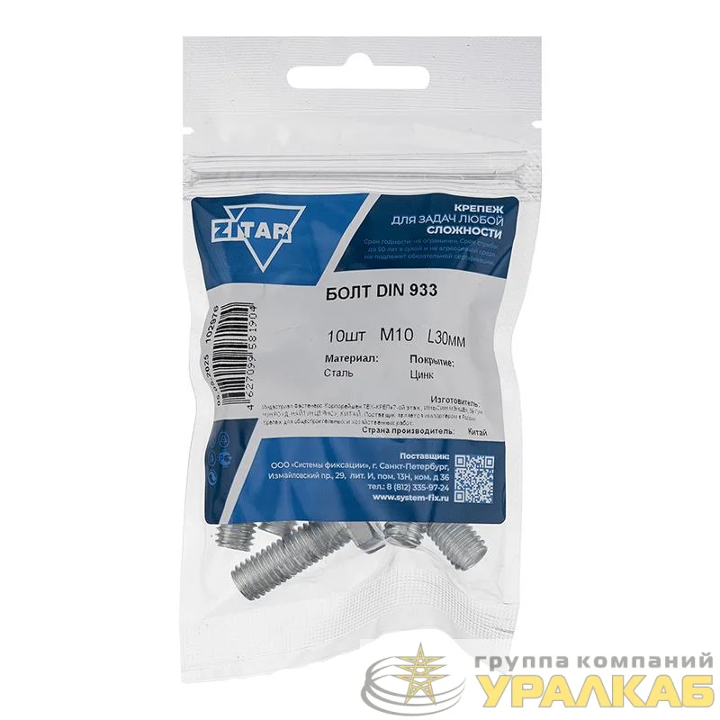 Болт с шестигранной головкой М10х30 DIN 933 оцинк. (уп.10шт) Tech-Krep/Zitar 102976