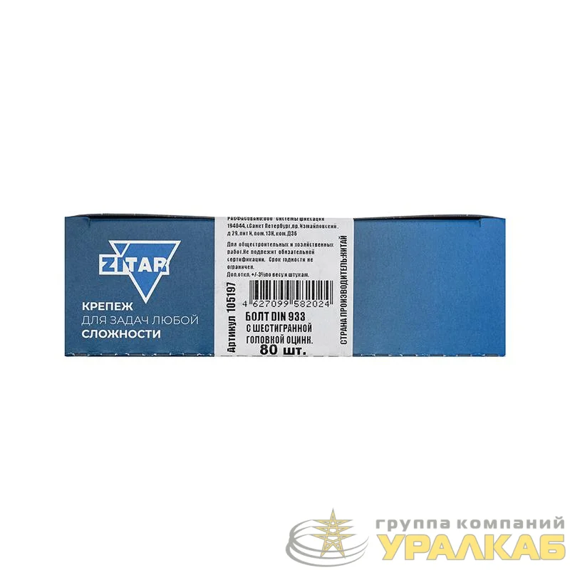 Болт с шестигранной головкой М5х30 DIN 933 оцинк. (уп.80шт) Tech-Krep/Zitar 105197