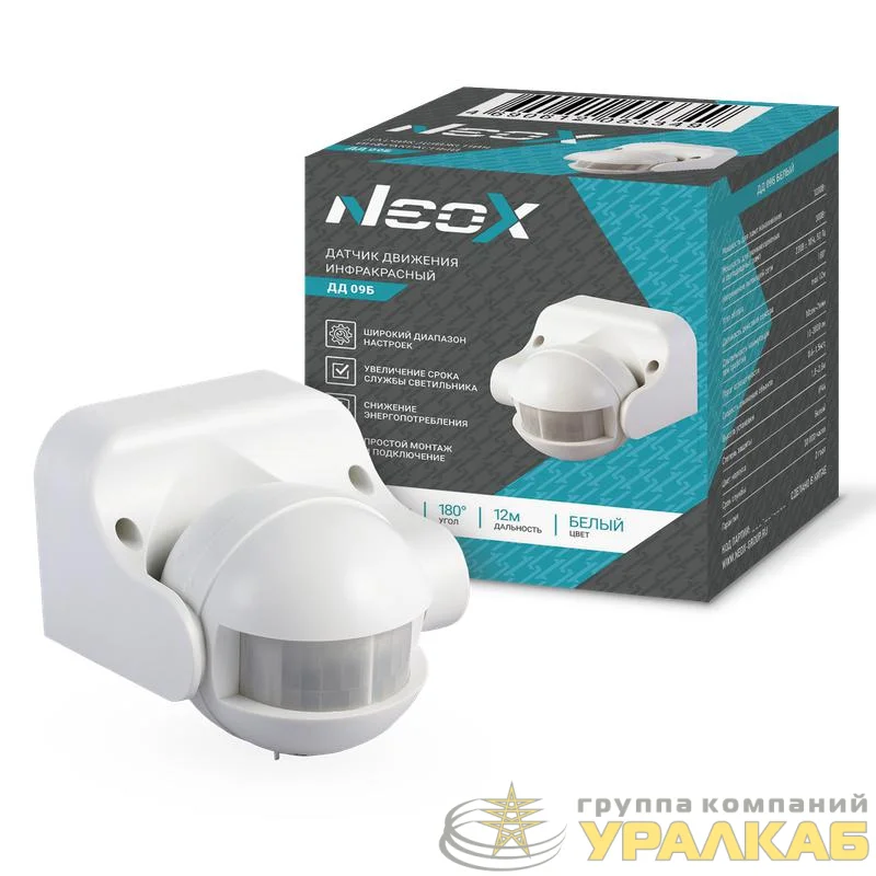 4690612053349 - Датчик движения инфракрасный ДД 09Б 1200Вт 180град. 12м IP44 бел. NEOX