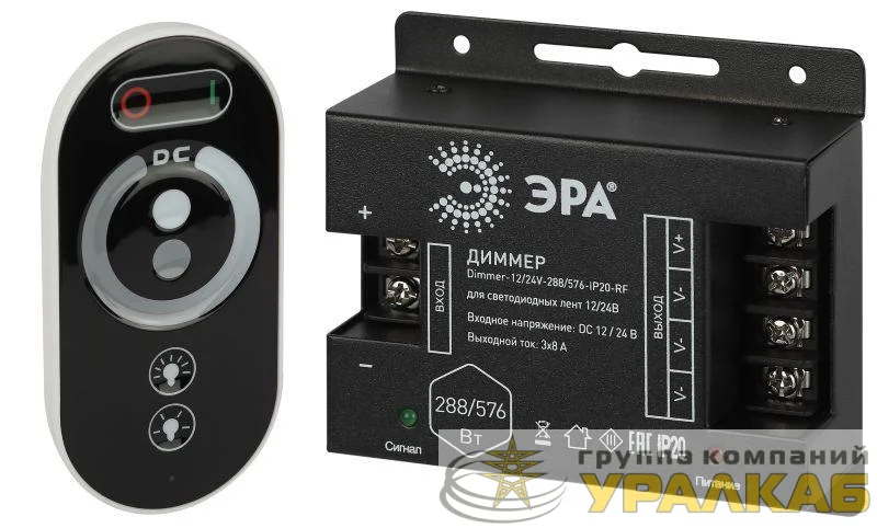Б0061115 - Диммер для светодиодной ленты Dimmer-12/24В-288/576-IP20-RF с радио пультом (для ленты RGB+W) Эра