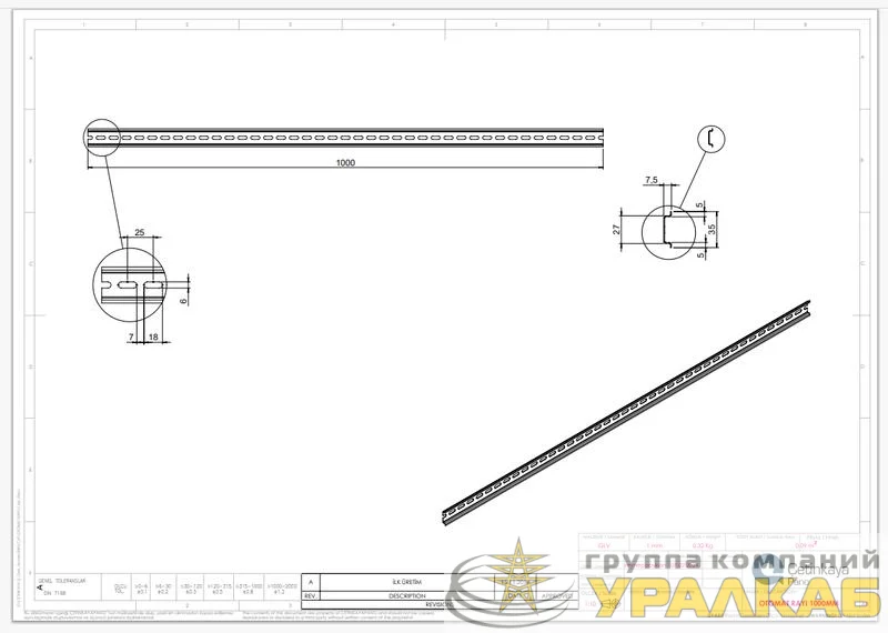 DIN-рейка перфорированная 35х7.5мм L2000 оцинк. Cetinkaya Pano CP4984