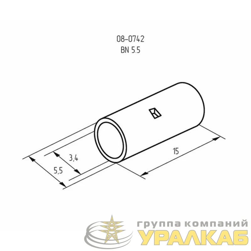 08-0742 - Гильза соединительная (СГ L-15мм) 4-6кв.мм (BN5.5) REXANT