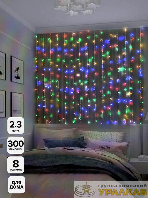 Гирлянда "Занавес" ICLLD300M-C 300LED RGB 3х3м 8режимов IP20 SHLights 4690601052995