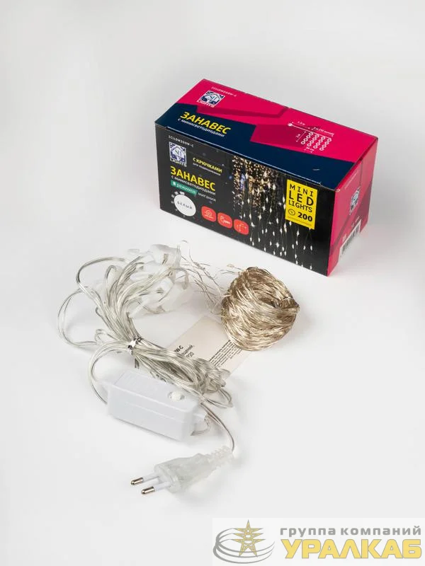 4690601054340 - Гирлянда "Занавес" ICLLDM200W-C 200LED бел. 3х2м 8 режимов IP20 SHLights