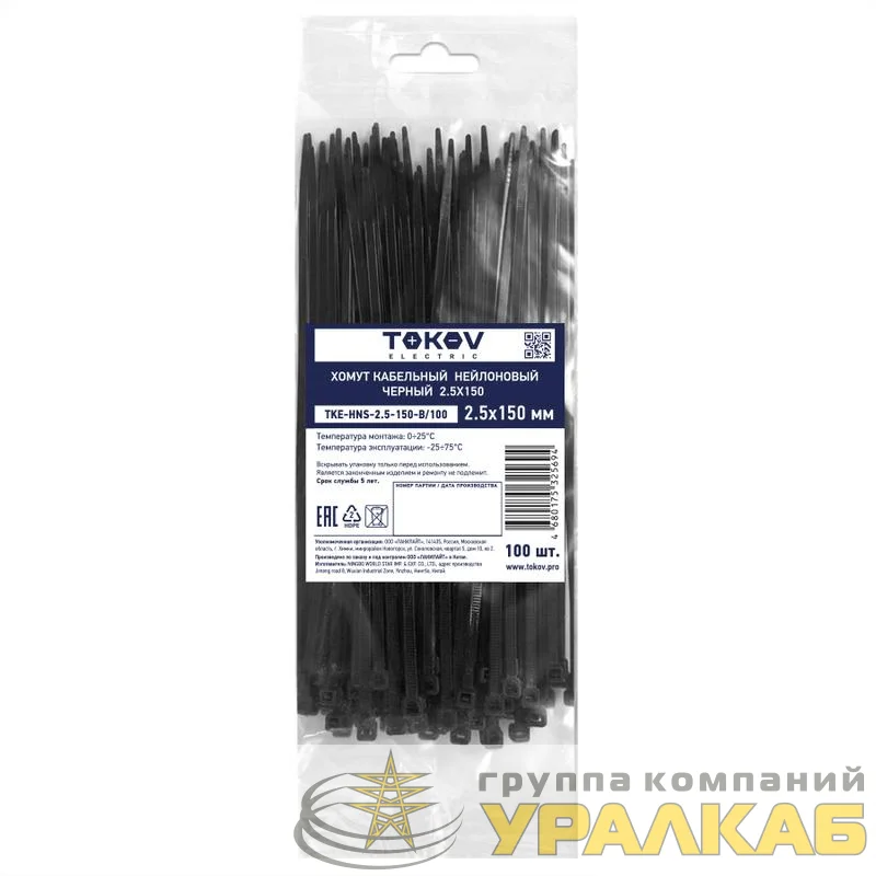 Хомут кабельный нейлоновый черн. 2.5х150 (уп.100шт) TOKOV ELECTRIC TKE-HNS-2.5-150-B/100
