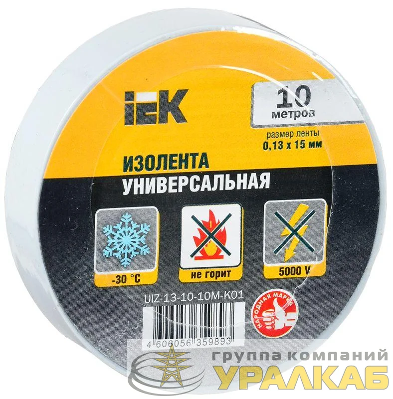 Изолента ПВХ 0.13х15мм (рул.10м) бел. IEK UIZ-13-10-10M-K01