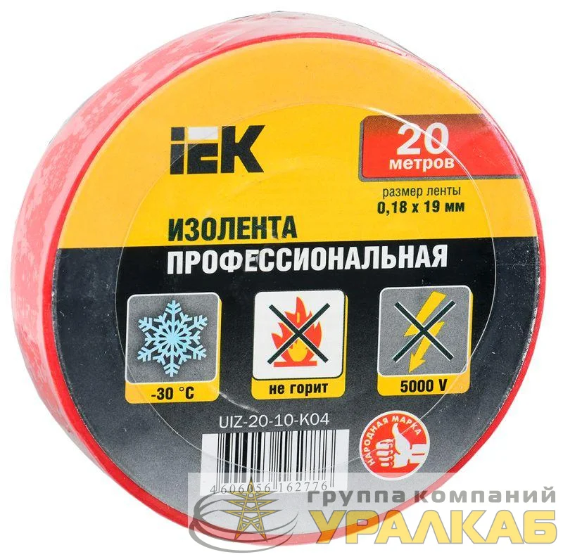 Изолента ПВХ 0.18х19мм красн. (рул.20м) IEK UIZ-20-10-K04
