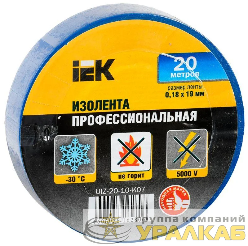 Изолента ПВХ 0.18х19мм син. (рул.20м) IEK UIZ-20-10-K07