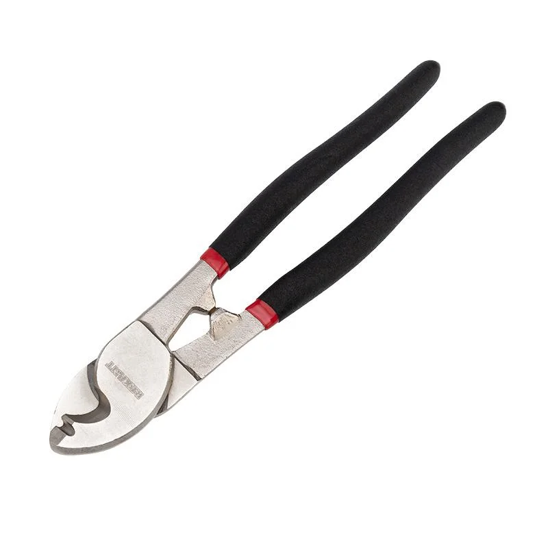 Корпус кабелереза изготовлен из высокопрочной хром-ванадиевой стали с оксидированным никелевым покрытием. С помощью рукояток можно настроить оптимальный диаметр разреза для зачистки изоляции и адаптировать инструмент под различные диаметры провода для удобной резки. Твердость закаленного сплава режущих кромок составляет 58-62 HRC, что позволяет им сохранять свою остроту и прочность при интенсивном использовании. Усиленные обливные изоляционные рукоятки не дают инструменту выскальзывать из руки при работе благодаря надежному сцеплению с материалом.
