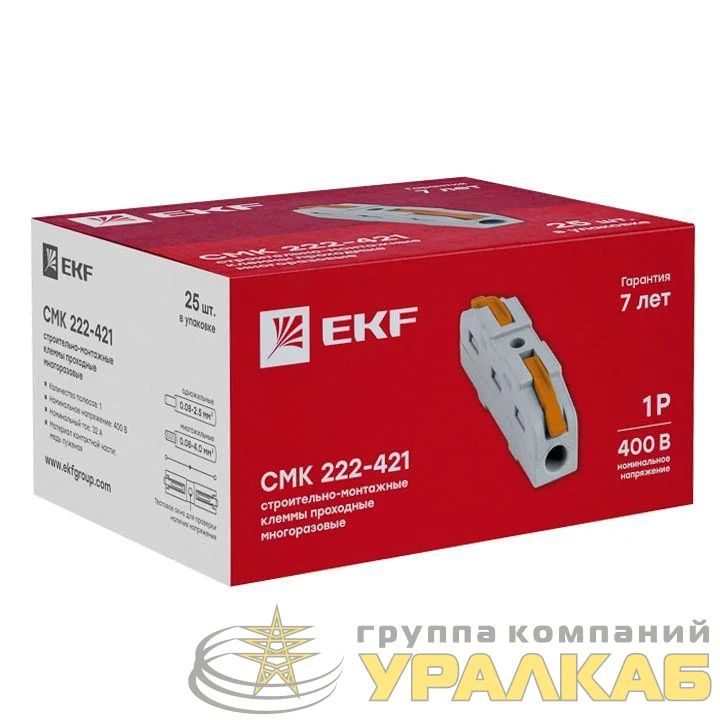 plc-smk-421 - Клемма строительно-монтажная СМК проходная 222-421 1п 0.08-4кв.мм (уп.25шт) PROxima EKF