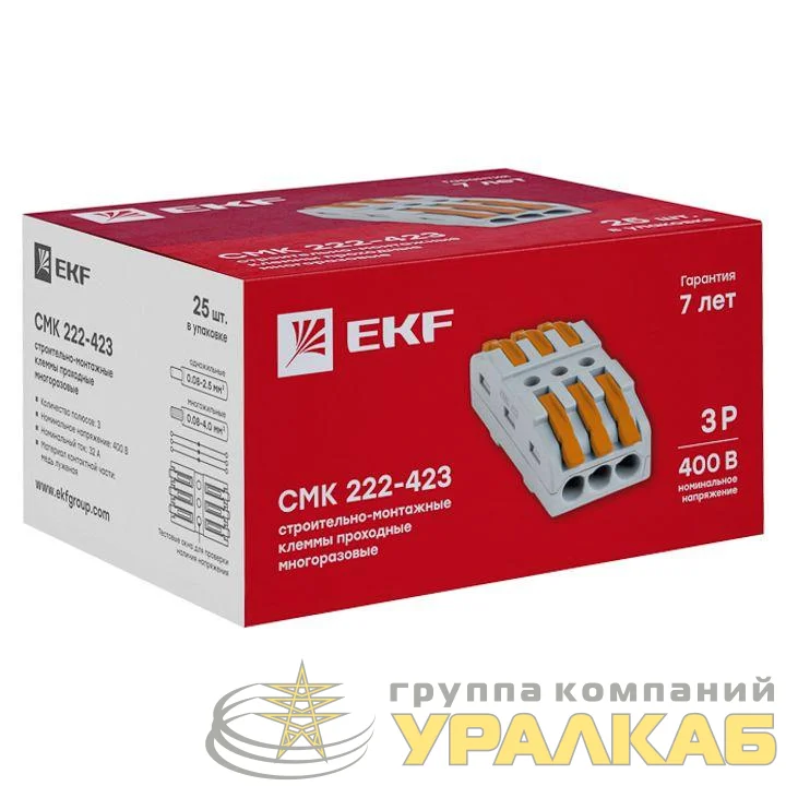 plc-smk-423 - Клемма строительно-монтажная СМК проходная 222-423 3п 0.08-4кв.мм (уп.25шт) PROxima EKF
