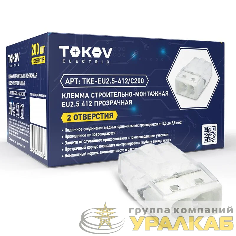 Клемма строительно-монтажная СМК 2273-202 EU2.5 412 2-проводная прозр. TOKOV ELECTRIC TKE-EU2.5-412/C200