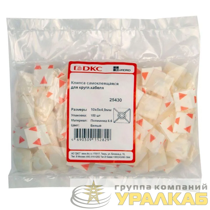 Клипса самоклеящаяся для круглого кабеля 10х5х4.9 бел. (уп.100шт) DKC 25430