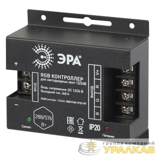 Б0061111 - Контроллер для светодиодной ленты с радио пультом RGBController-12/24V-288/576W-IP20-RF ЭРА