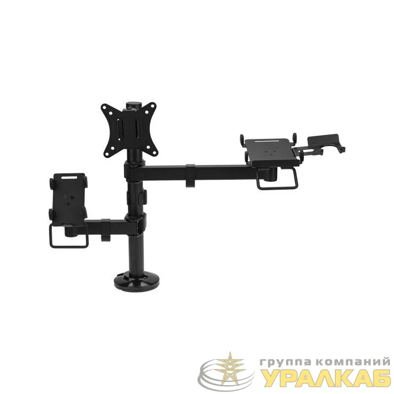 Кронштейн оснащен системой укладки кабеля вдоль корпуса, которая позволяет аккуратно уложить кабель, и тем самым, предотвратить спутывание проводов. Предназначен для настольного монтажа, крепление на струбцине позволяет быстро и легко установить кронштейн на рабочем месте.
