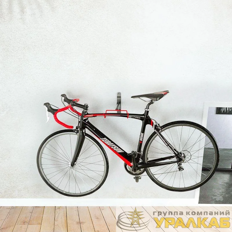 Велосипед надежно подвешивается за раму, за счет чего не занимает много пространства. Крюк покрыт ПВХ для защиты от царапин.
