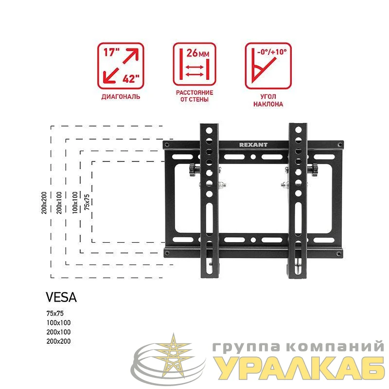 38-0320 - Кронштейн для LED телевизора 17-42дюйм наклонный Rexant