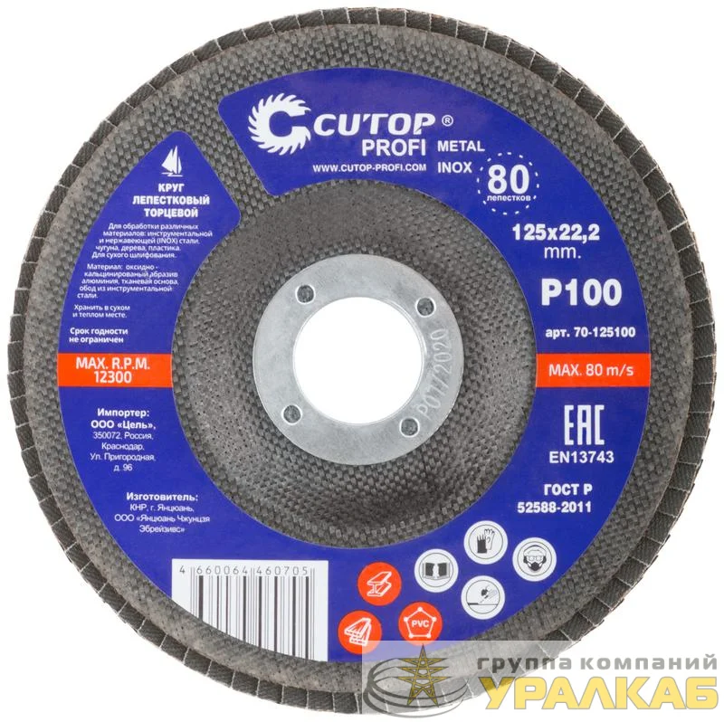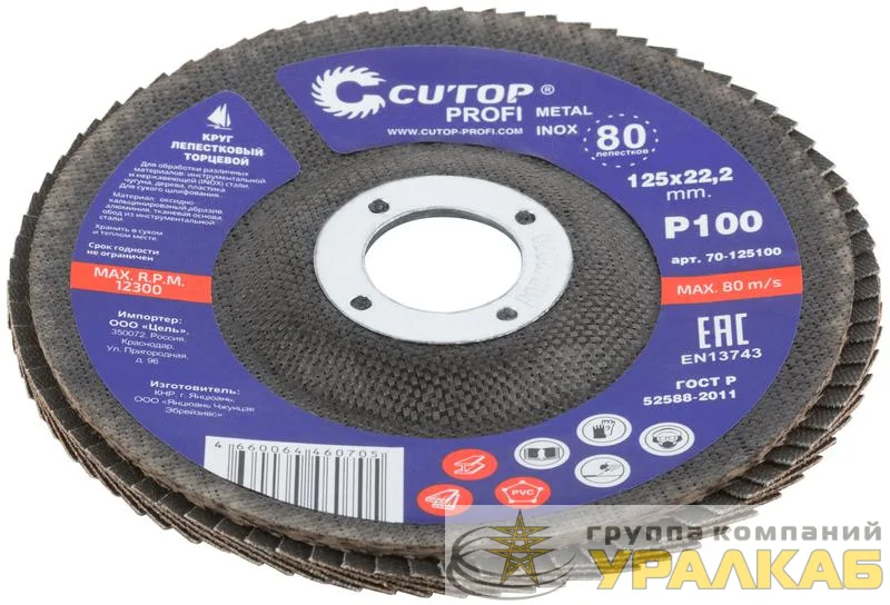 70-125100 - Круг лепестковый торцевой Profi (80 лепестков) 125х22.2мм Р100 Cutop