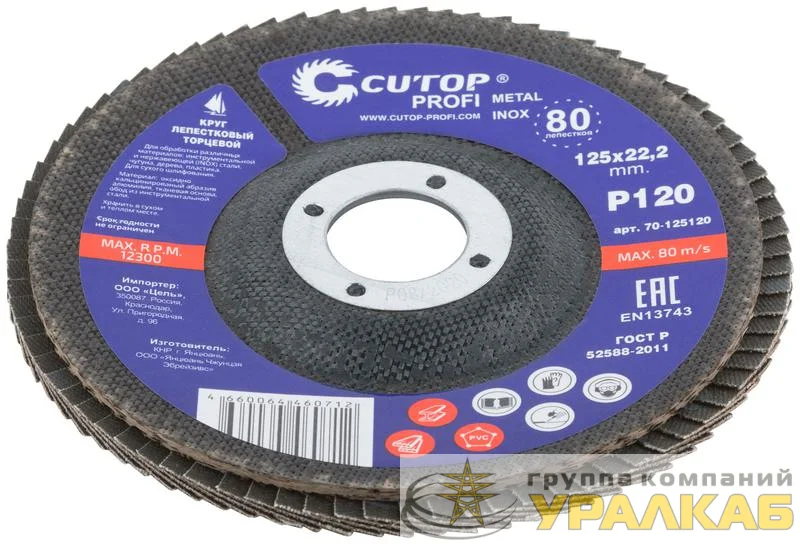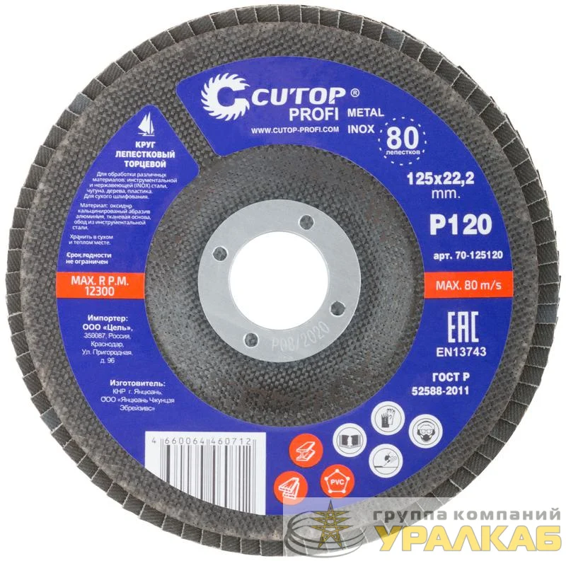 70-125120 - Круг лепестковый торцевой Profi (80 лепестков) 125х22.2мм Р120 Cutop