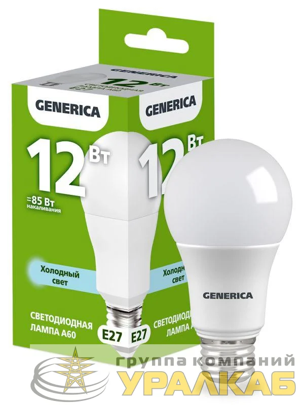 Лампа светодиодная A60 12Вт грушевидная 6500К E27 230В GENERICA LL-A60-12-230-65-E27-G