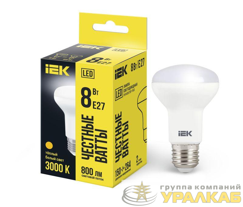 Лампа светодиодная R63 8Вт 3000К тепл. бел. E27 720лм 230-240В IEK LLE-R63-8-230-30-E27