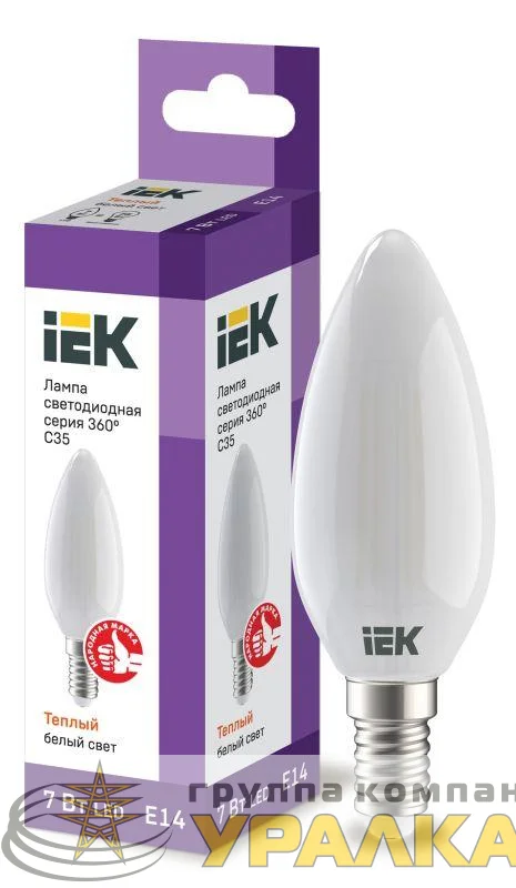 LLF-C35-7-230-30-E14-FR - Лампа светодиодная филаментная 360° 7Вт C35 свеча матовая 3000К тепл. бел. E14 230В IEK