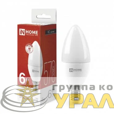 Лампа светодиодная LED-СВЕЧА-VC 6Вт свеча 4000К нейтр. бел. E14 570лм 230В IN HOME 4690612020396
