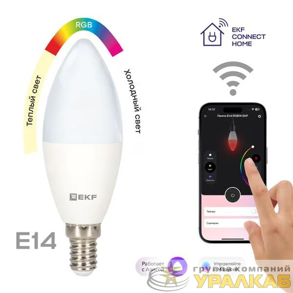 slwf-e14-rgbw - Лампа светодиодная Умная Connect 5Вт WIFI RGBW E14 EKF