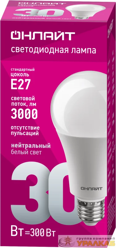 61971 - Лампа светодиодная 61 971 OLL-A70-30-230-4K-E27 30Вт грушевидная 4000К нейтр. бел. E27 3000лм 176-264В ОНЛАЙТ