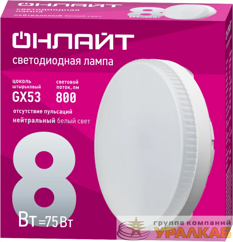 71639 - Лампа светодиодная 71 639 OLL-GX53-8-230-4K 8Вт таблетка 4000К нейтр. бел. GX53 800лм 176-264В ОНЛАЙТ