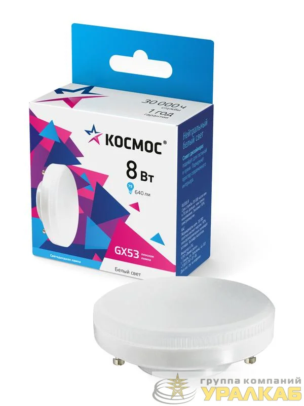 Lksm_LED8wGX5345C - Лампа светодиодная 8Вт 220В GX53 4500К КОСМОС