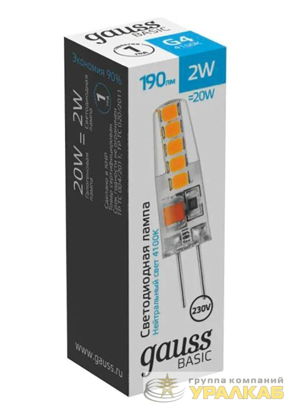 1169722 - Лампа светодиодная Basic G4 2Вт 4100К 190лм AC220-240В силикон GAUSS
