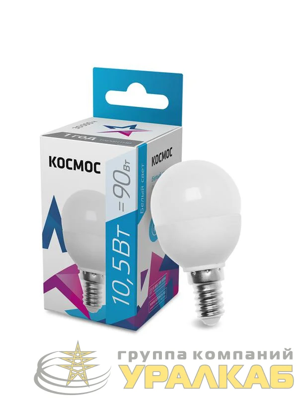 Лампа светодиодная 10.5Вт шар 4500К бел. E14 220В КОСМОС LkeLED10.5wGL45E1445