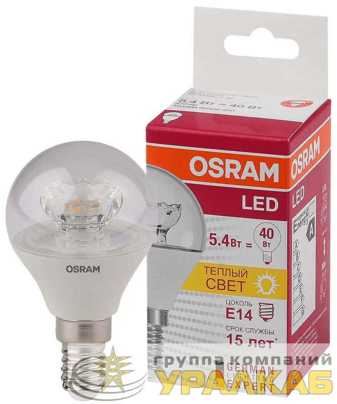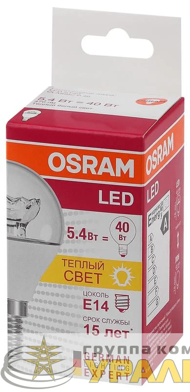 4052899971622 - Лампа светодиодная LED STAR CLASSIC P 40 5.4W/830 5.4Вт шар прозрачная 3000К тепл. бел. E14 470лм 220-240В пластик. OSRAM
