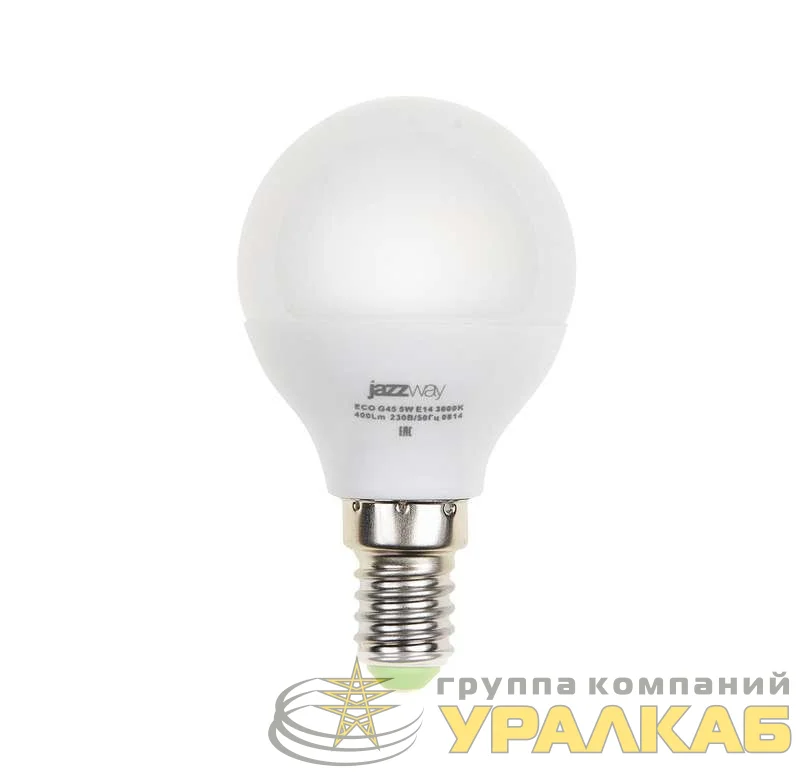 Лампа светодиодная PLED-ECO-G45 5Вт шар 4000К нейтр. бел. E14 400лм 220-240В JazzWay 1036926A