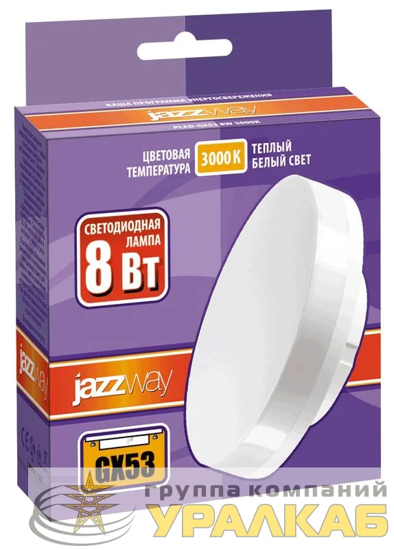 Лампа светодиодная PLED-GX53 8Вт таблетка матовая 3000К тепл. бел. GX53 640лм 230В JazzWay 2855374