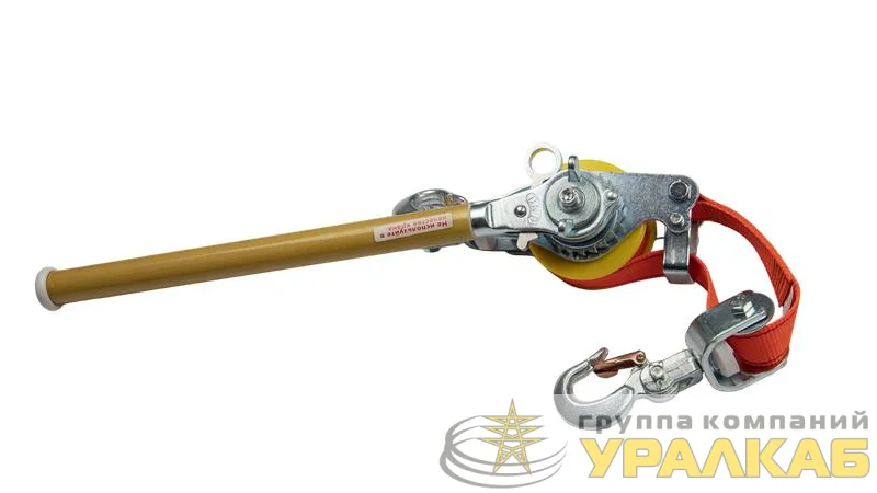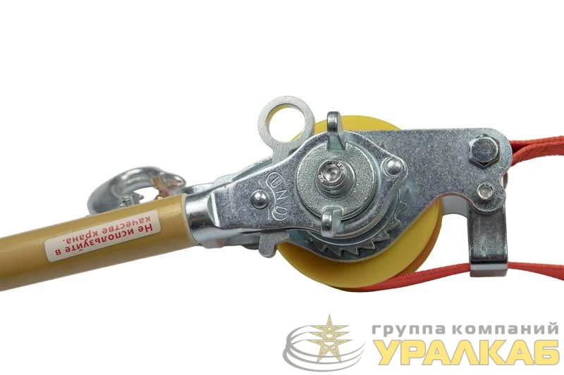 Рукоятка выполнена из диэлектрического материала, соединенная с храповым механизмом. Механзимо оснащен тремя скоростями - нейтраль (блокирует заданное тяжение), основная (производит натяжение тали), реверс (снижает тяжение тали).