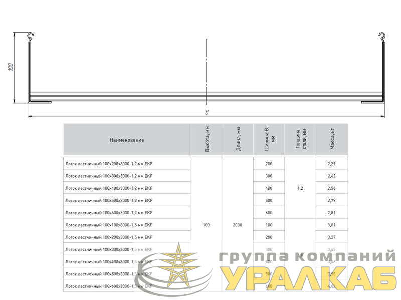 LT100500x6-1,5-HDZ - Лоток лестничный 100х500 L6000 1.5мм HDZ EKF LT100500x6-1.5-HDZ