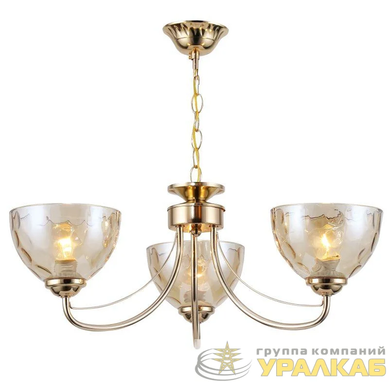 Три стеклянных плафона люстры потолочной подвесной Adrianne впечатляют красивым объёмным узором и мягкой тёплой тонировкой.