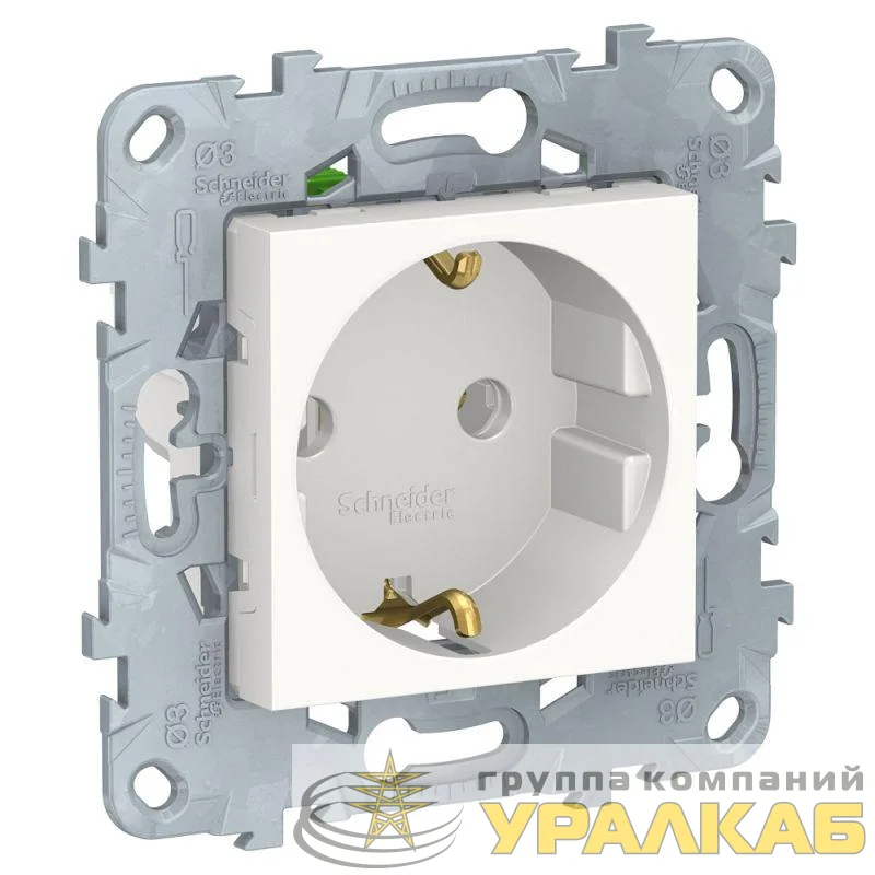 Механизм розетки 1-м СП 2мод. Unica New 16А IP20 250В с заземл. без защ. шторок быстрозажим. клеммы бел. SchE NU505618
