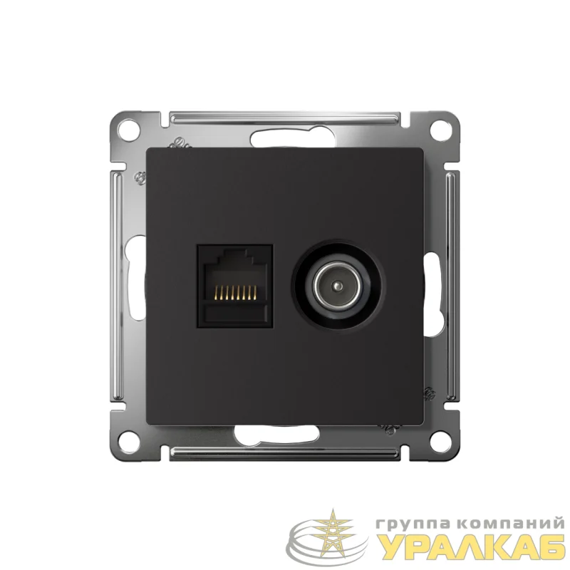 ATN001089 - Розетка компьютерная + телевизионная 2-м СП AtlasDesign RJ45 кат.5E + TV механизм карбон SE