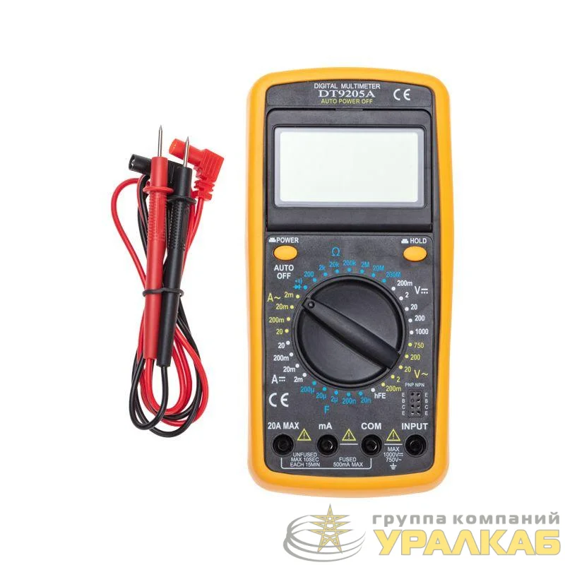 Комплект поставки: мультиметр, измерительные щупы, батарея, инструкция, упаковка