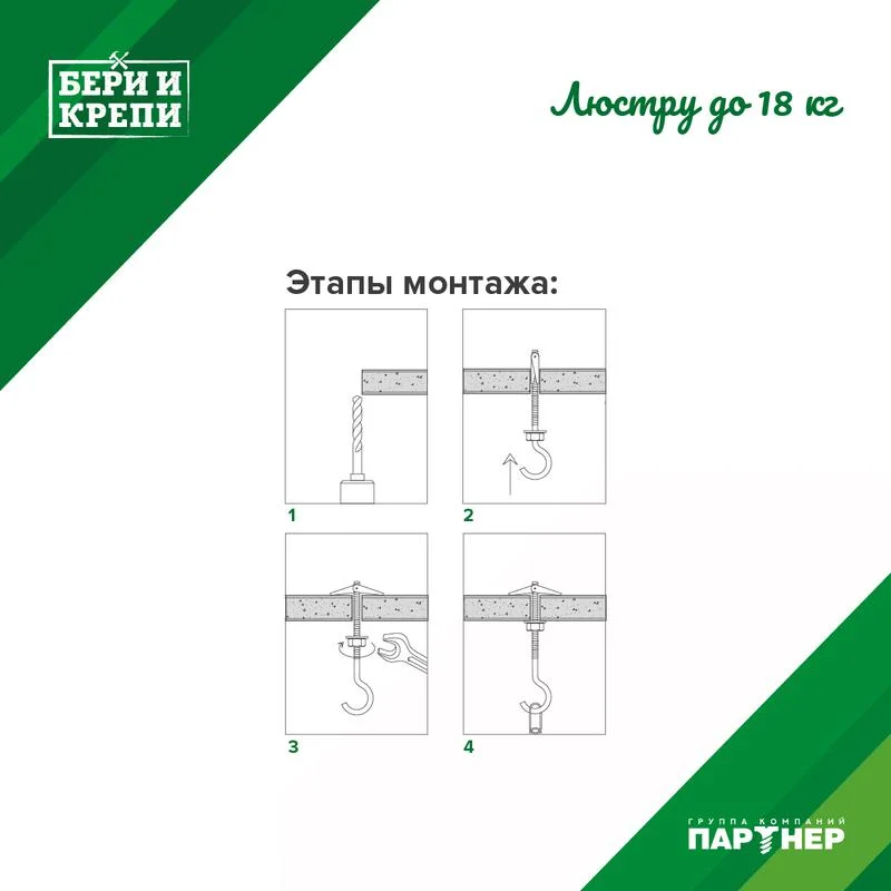 Набор для крепления люстры (до 18кг) БЕРИ И КРЕПИ Партнер 70833