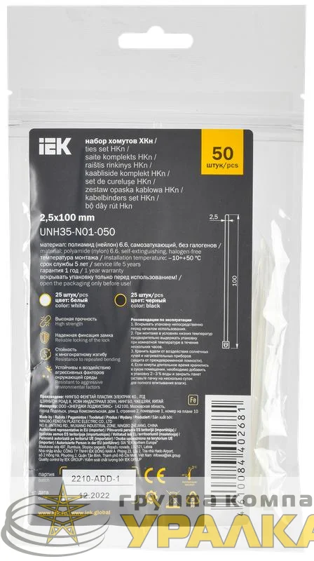 Набор хомутов 2.5х100 (25б. 25ч) (уп.50шт) IEK UNH35-N01-050
